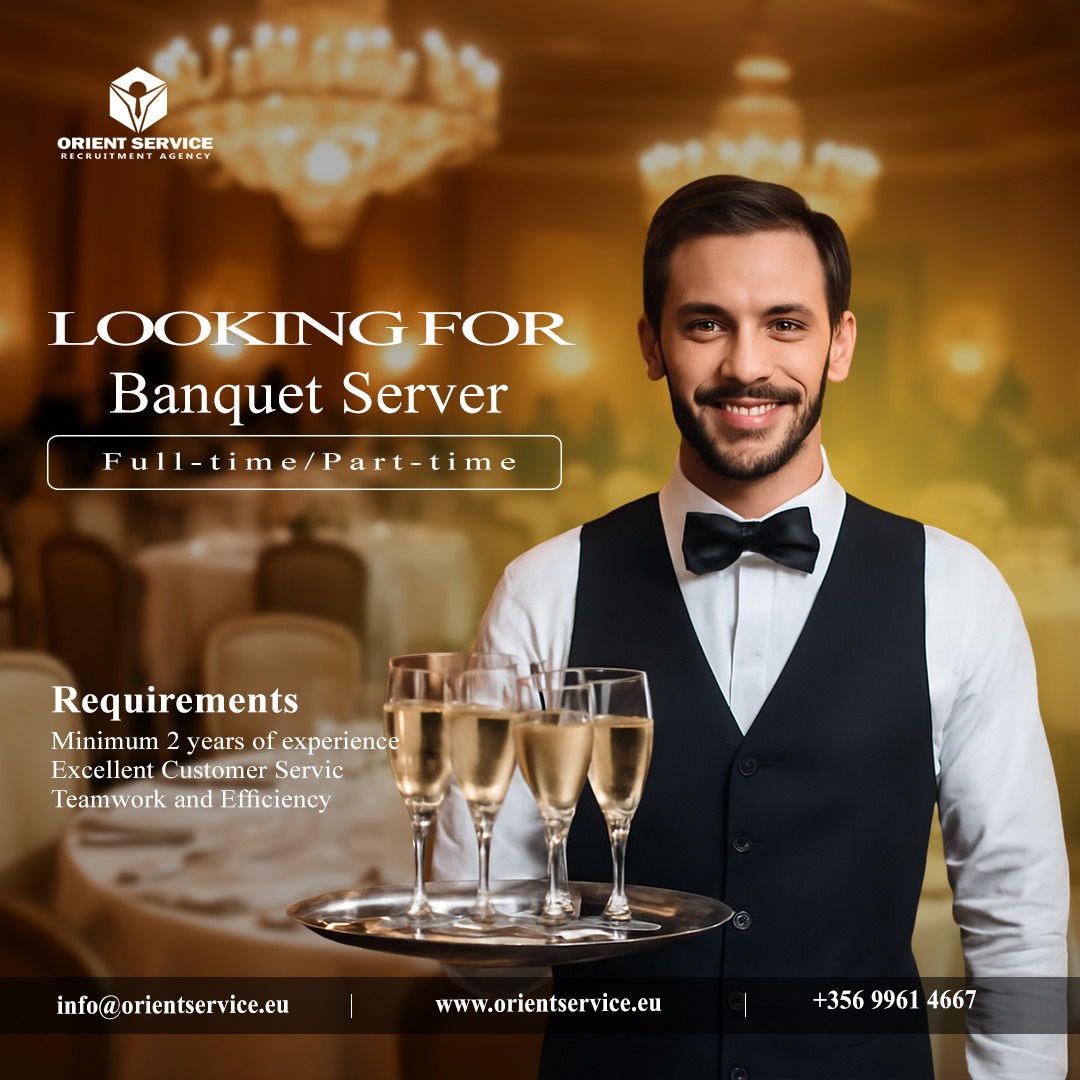 Are you passionate about hospitality, service, and creating memorable dining experiences? Orient Service Recruitment Agency is excited to announce new job openings for Banquet Servers—both full-time and part-time positions are available. Whether you are an experienced hospitality professional or looking to take your service career to the next level, this is your opportunity to become part of a respected international network that connects skilled individuals with the finest hotels, restaurants, and event venues across Europe and beyond.