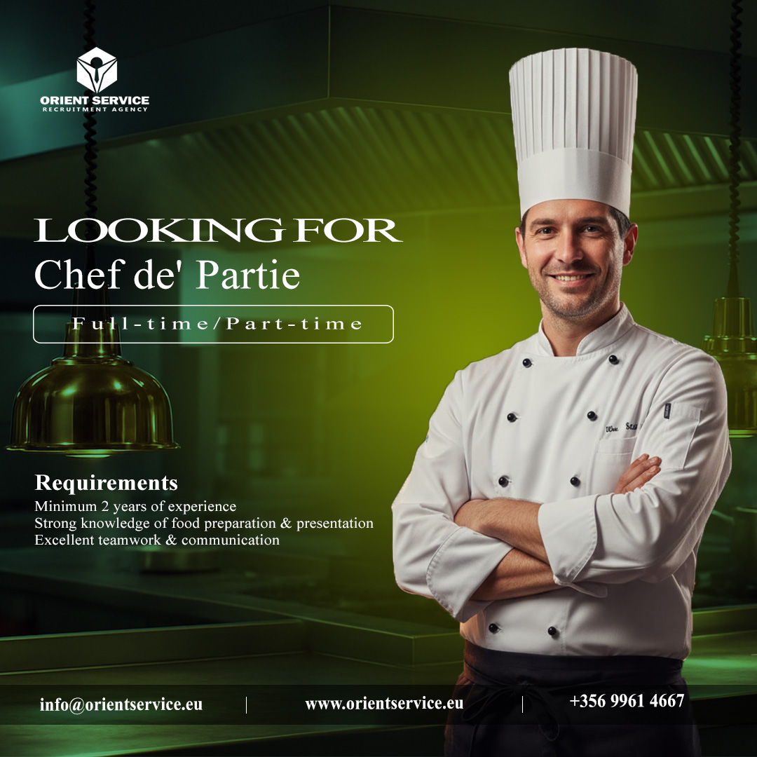 Are you passionate about culinary excellence and ready to take your career to the next level? Orient Service Recruitment Agency is now looking for a talented and experienced Chef de Partie to join one of our prestigious hospitality partners. This is a fantastic opportunity for a culinary professional who thrives in a fast-paced environment and takes pride in delivering high-quality dishes with creativity, precision, and passion. Whether you are looking for a full-time or part-time position, this role offers a chance to grow your skills and work alongside some of the most respected chefs in the industry.
